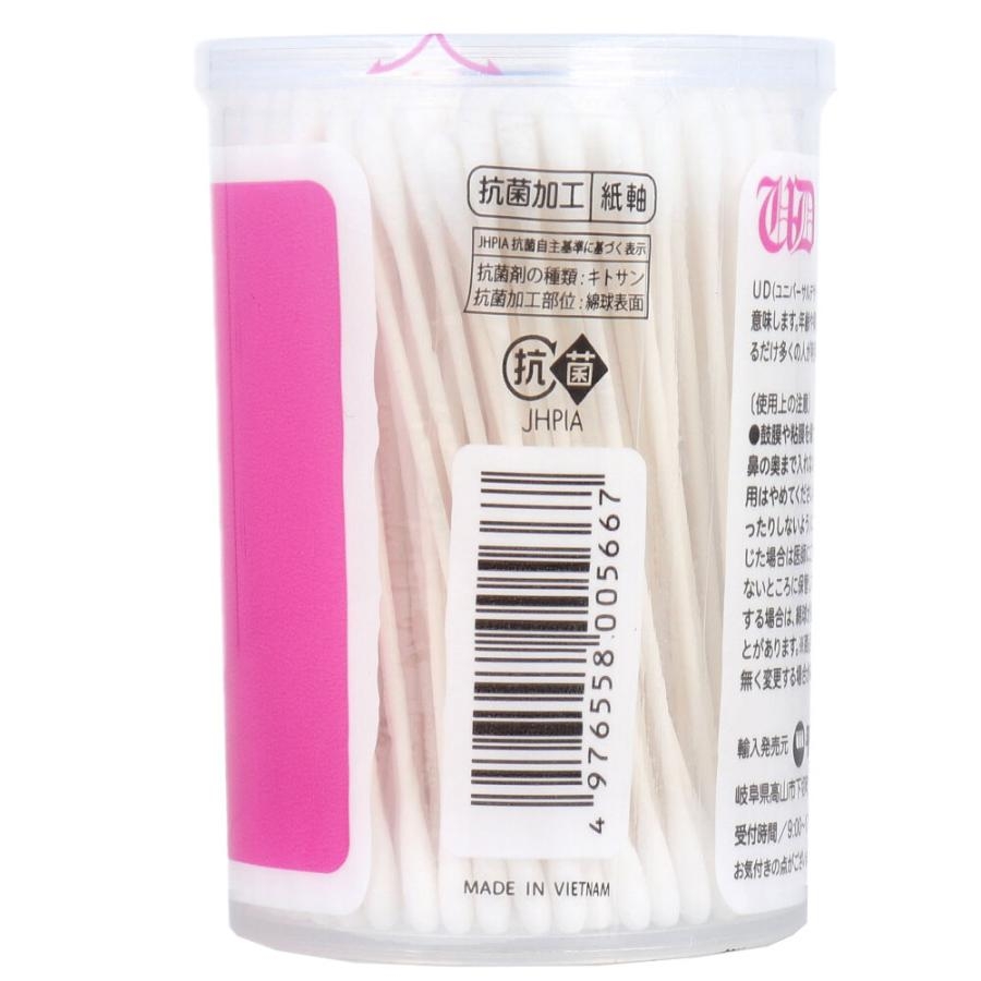 Bông tăm ngoáy tai thân giấy UD sử dụng que thân giấy thân thiện với môi trường, đầu bông từ cotton tự nhiên nay đã được tăng cường gấp 3 khả năng kháng khuẩn nhờ sự kết hợp chiết xuất Chitosan, BZC, CPC 3in1 ngăn nấm mốc, hạn chế vi khuẩn.