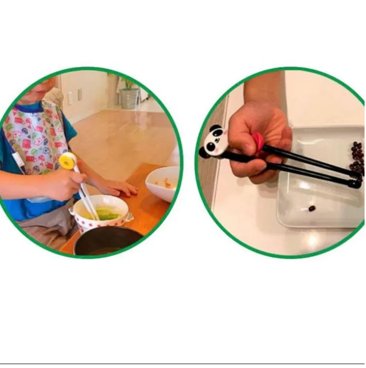 -Thiết kế đũa thông minh có miếng đệm đỡ tay giúp hỗ trợ bé tập cầm đũa gắp.