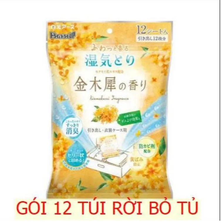 1. DẠNG TÚI RỜI - BỎ Ở NGĂN KÉO TỦ (Phù hợp cho quần áo chia ngăn): quy cách gồm 12 túi hút ẩm nhỏ, mỗi túi sẽ bỏ được ngăn tủ khoảng 50 lít (Kích thước 51x 35 x 28 hoặc 90x 45 x12CM). Mã vạch sản phẩm: 4902407393944