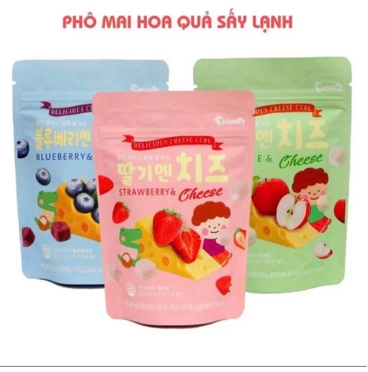 Phô mai sấy lạnh Yomit Hàn Quốc là một trong các sản phẩm ăn dặm được nhiều trẻ em yêu thích vì với thành phần chính là phô mai và hoa quả được sử dụng công nghệ sấy đông lạnh, phô mai vẫn giữ nguyên được hương vị thơm ngon cùng các dưỡng chất nên rất khác với các sản phẩm được sấy ở nhiệt độ cao theo cách làm truyền thống. Với công nghệ sấy lạnh giúp thực phẩm giữ tốt hương vị hơn, dưỡng chất lưu lại nhiều hơn khi sấy lạnh. Sản phẩm phù hợp cho trẻ từ 6 tháng tuổi trở lên.