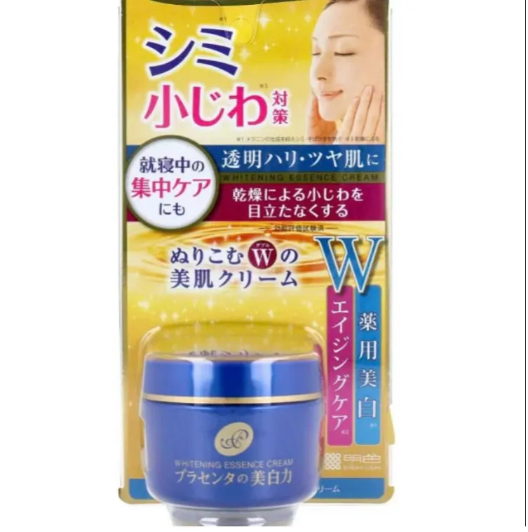 - Kem dưỡng Meishoku Whitening Essence Cream Placenta với chất kem mềm hỗ trợ dưỡng ẩm da và dưỡng trắng da, ngăn ngừa hình thành nám, tàn nhang với thành phần Collagen, dầu cám gạo và dầu hạt ý dĩ.