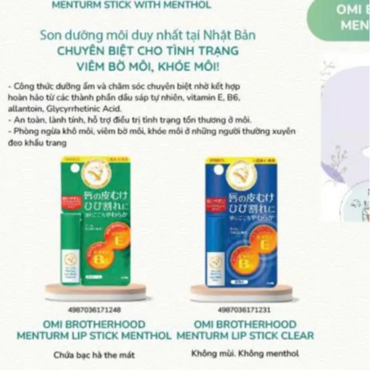 Son dưỡng môi bạc hà Omi dòng Mendical là dòng dưỡng môi chuyên biệt cho tình trạng viêm bờ môi, khóe môi với công thức dưỡng ẩm và chăm sóc chuyên biệt nhờ kết hợp hoàn hảo từ 4 thành phần:
