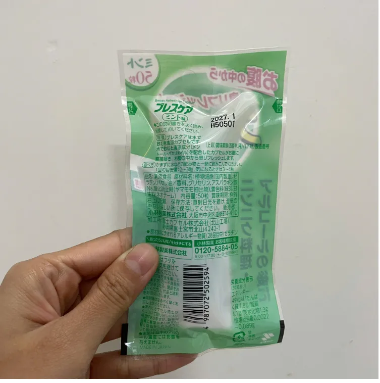 Viên hỗ trợ thơm miệng tinh dầu bạc hà Kobayashi không phải là kẹo ngậm mà là viên uống trực tiếp với nước để làm mới hơi thở từ trong ra ngoài. Sản phẩm n toàn khi sử dụng, vì tất cả thành phần đều là chiết xuất thực vật được chứng nhận là thực phẩm.