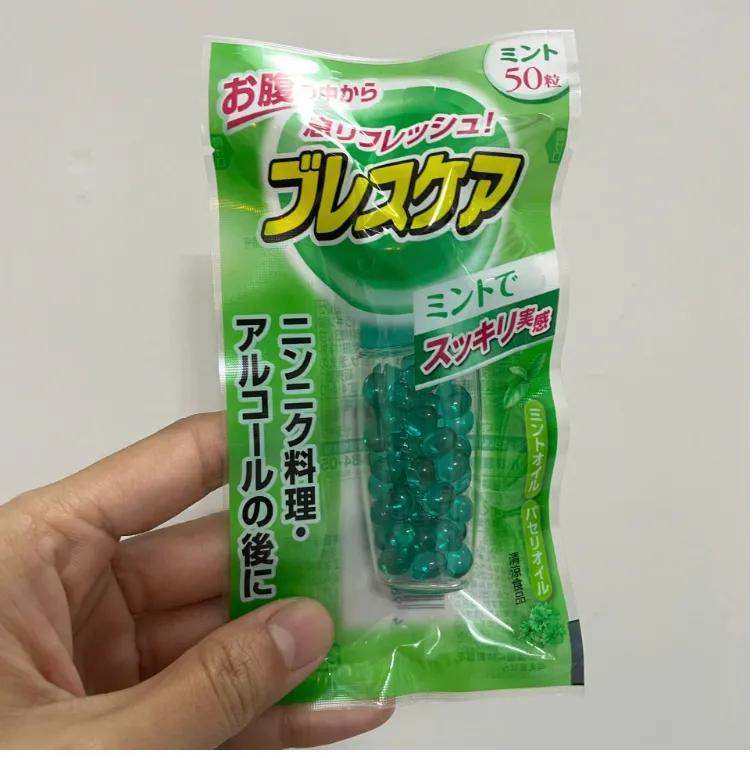 - Viên nang làm thơm miệng này được uống với nước. Khi uống với nước, các viên nang chứa các thành phần làm mát (menthol và dầu mùi tây), sẽ đi trực tiếp đến dạ dày, làm thơm miệng từ bên trong.